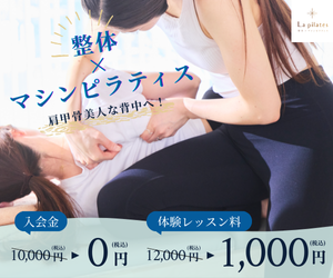 以前別の場所でグループレッスンのピラティスに通っていましたが、La Pilatesさんはパーソナルでピラティス、整体のことを細かく教えてくださり、体の変化が1番感じられました。インストラクターの方も親切で親しみやすく、具体的に足りてない部分を教えていただき、とても分かりやすいレッスンでした。今後も通いながら身体の変化を楽しみたいと思います!